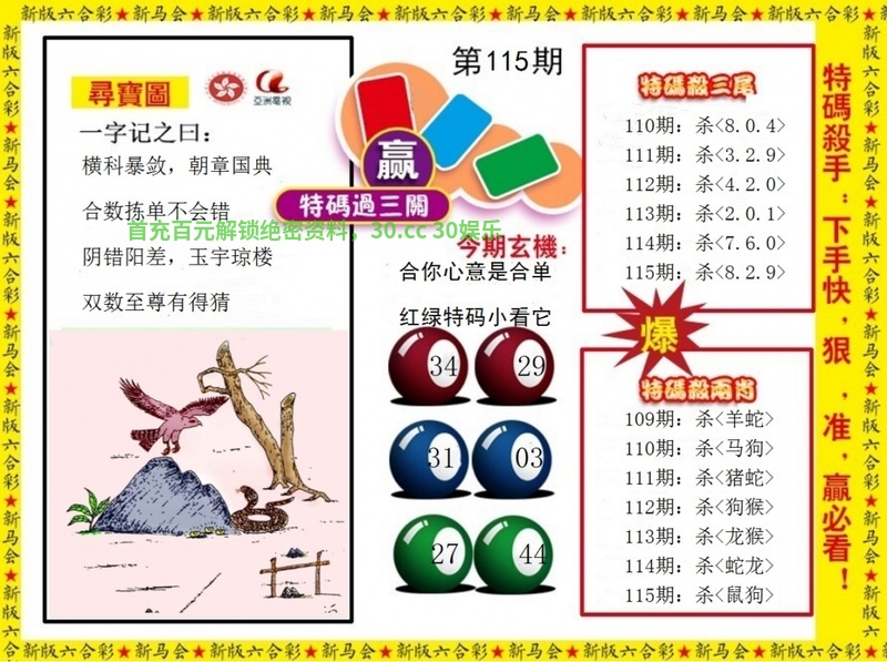 | 113→115期:必中生肖〖龙马鸡猴〗 |